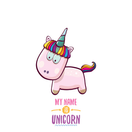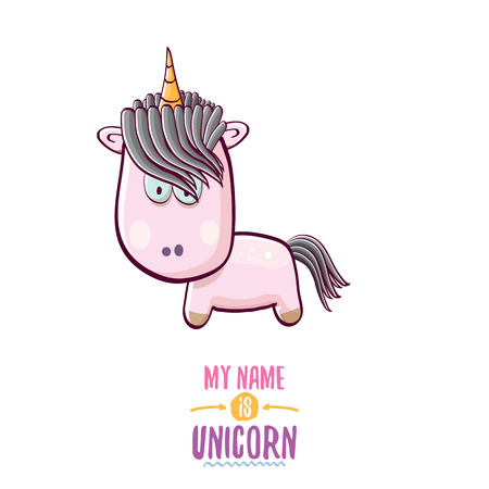 ベクトル面白い漫画かわいいピンクの妖精ユニコーンは 白い背景に隔離されています 私の名前はユニコーンベクトルコンセプトイラスト ファンキーな手描き キャラクターですのイラスト素材 ベクタ Image