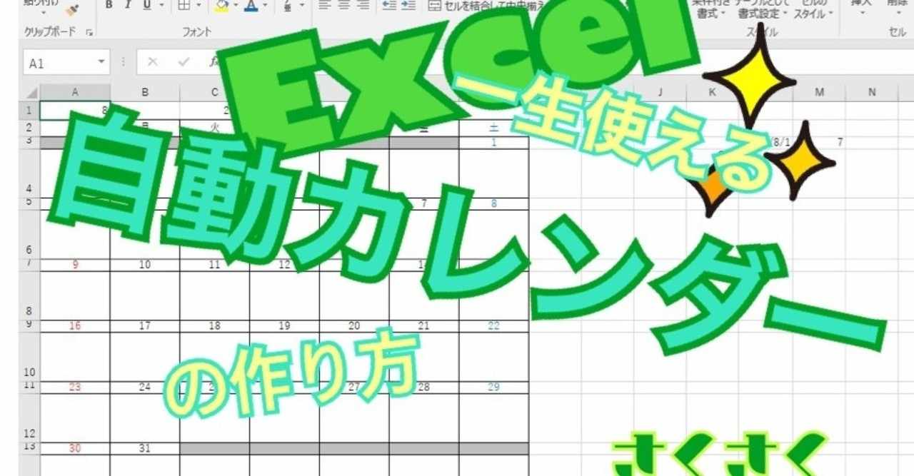 カレンダーに一生困らない Excel 自動カレンダー の作り方徹底解説 働き方改革 さくさく先生 Note