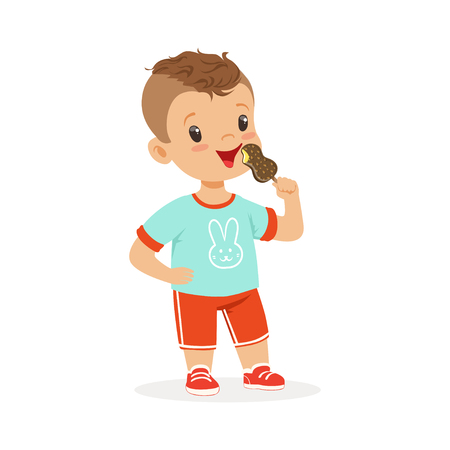 かわいい男の子キャラクター彼のアイスクリームの漫画のベクトル図と幸せな気持ち イラストレーションのベクターアート素材や画像を多数ご用意 Istock