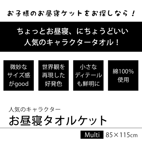 お昼寝ケット 子供用 タオルケット 85 115cm キャラクター アニメ 保育所 綿100 羽毛布団通販 こだわり安眠館 本店