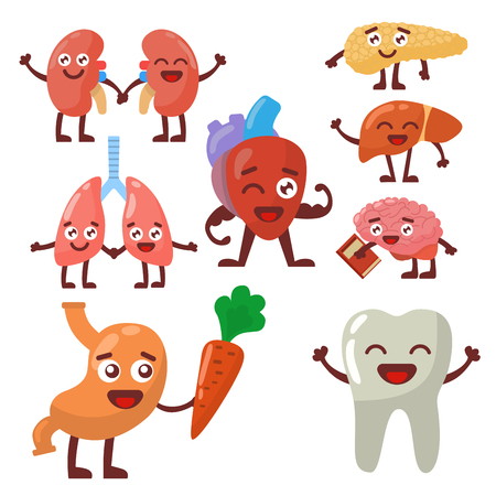 人間の臓器は健康で不健康な解剖学的面白い漫画のキャラクターペアベクトル のイラスト素材 ベクタ Image