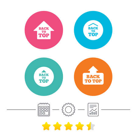 戻る上のアイコン 上にスクロール矢印サインとシンボル チャット 報告書 カレンダーのサイン 星 統計 ダウンロードのアイコン 質問 時計 グローブ ベクトルのイラスト素材 ベクタ Image